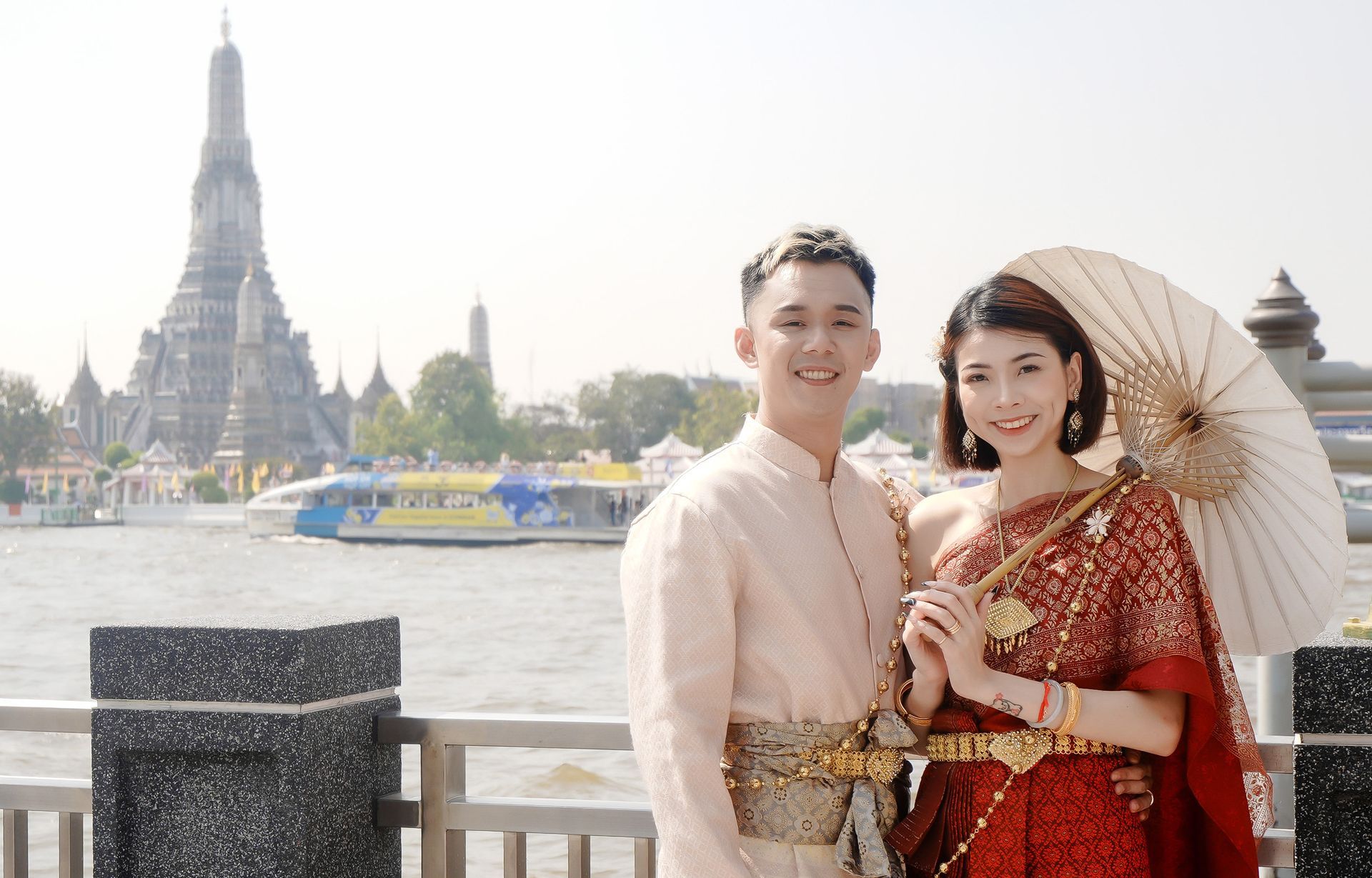 We offer a specialized Riverside Photography & Styling Package that captures your journey between Wat Pho and Wat Arun.